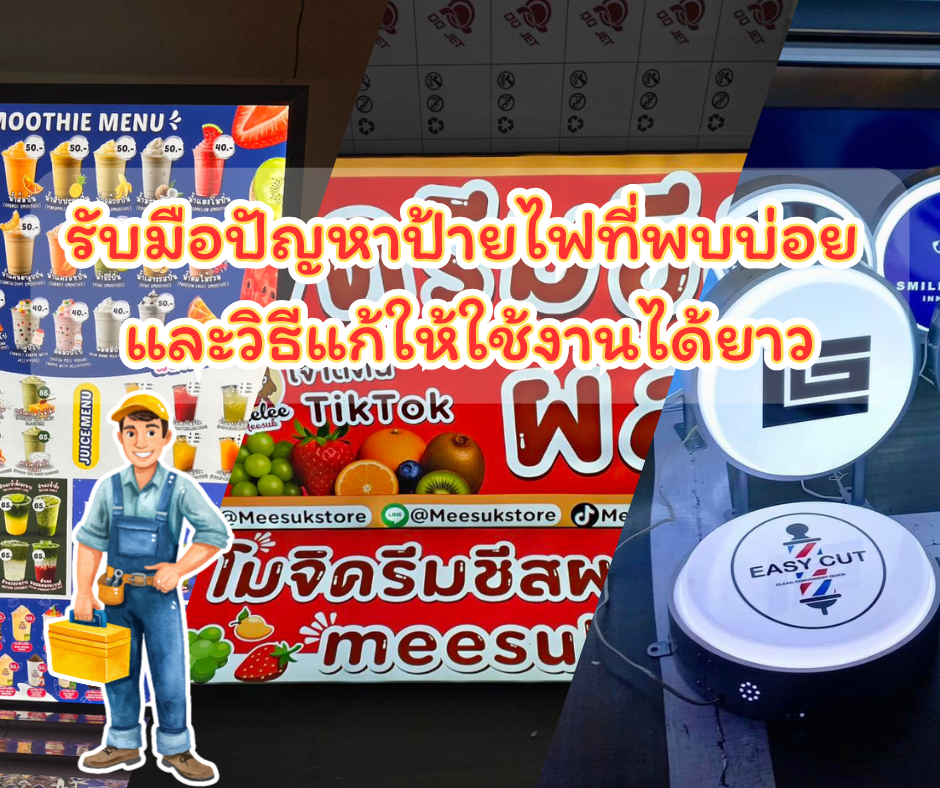 แม้ป้ายไฟจะเป็นอุปกรณ์ที่ทนทานและใช้งานง่าย แต่ในสภาพแวดล้อมจริง เช่น ร้านอาหาร ตลาดนัด หรือพื้นที่กลางแจ้ง ก็อาจเกิดปัญหาได้บ้าง ซึ่งหลายครั้งปัญหาเล็ก ๆ สามารถแก้ได้ทันทีโดยไม่ต้องซ่อมใหญ่